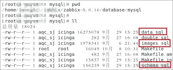 在zabbix用户下执行数据库初始化脚本文件schema.sql、images.sql、data.sql: