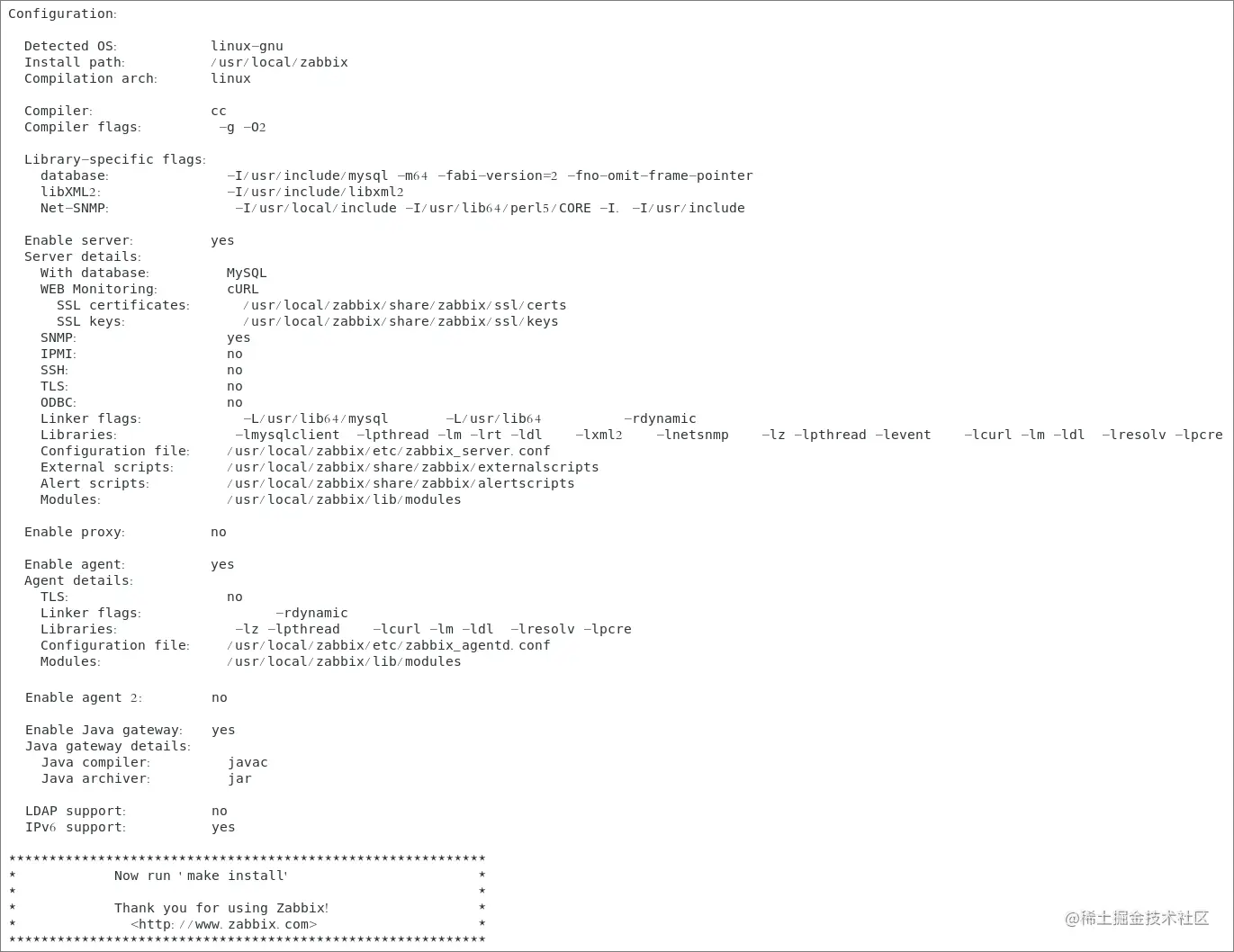 进入解压后的文件夹,我们同时配置Server、Agent(Server所在服务器自身也要启动Agent)、Java Gateway(使Server具备Java服务监控功能),指定安装目录为/usr/local/zabbix: