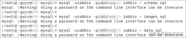 mysql -uzabbix -p密码 zabbix < schema.sql
