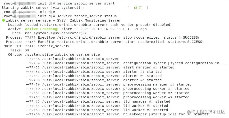 这是因为之前指定了安装目录为/usr/local/zabbix,而所拷贝的自启脚本中则是默认的安装路径/usr/local。