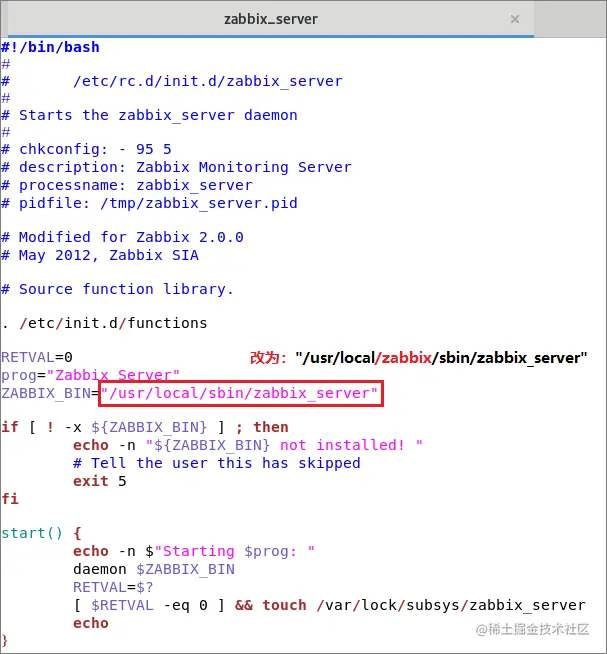 修改/etc/init.d/zabbix_server文件中ZABBIX_BIN的值:
