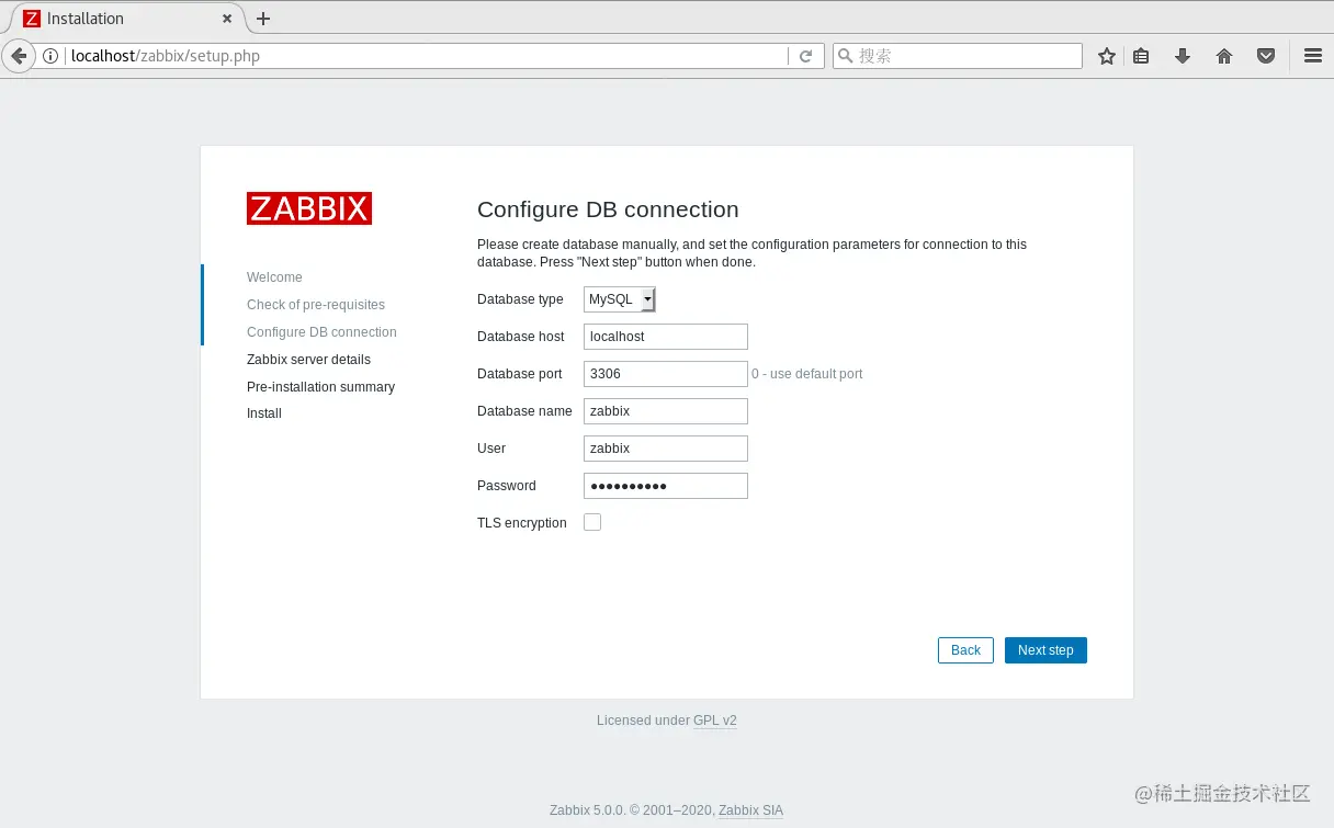 5.4版本在安装完成后进行初始化配置时,配置数据库链接的页面有脚本错误,未能解决,经过多个版本的切换试验,最终采用的Zabbix版本如下: