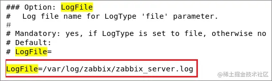 配置文件所在位置:/usr/local/zabbix/etc/zabbix_server.conf(其中/usr/local/zabbix为配置时所指定的安装目录)