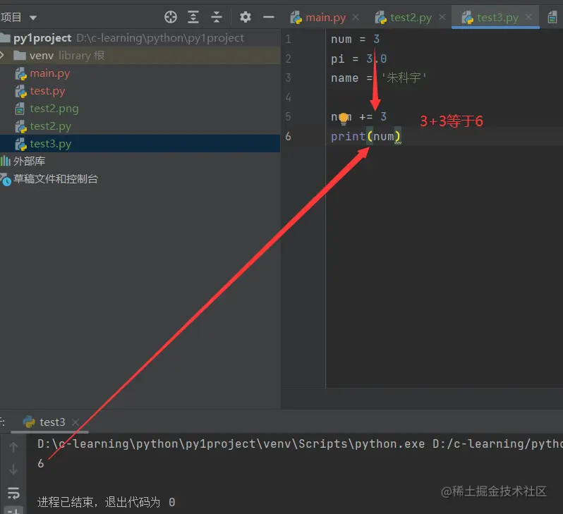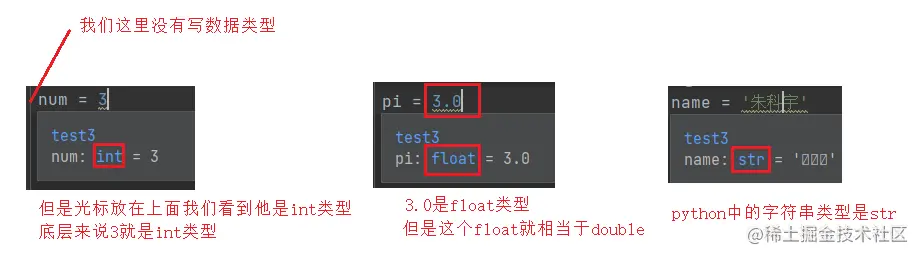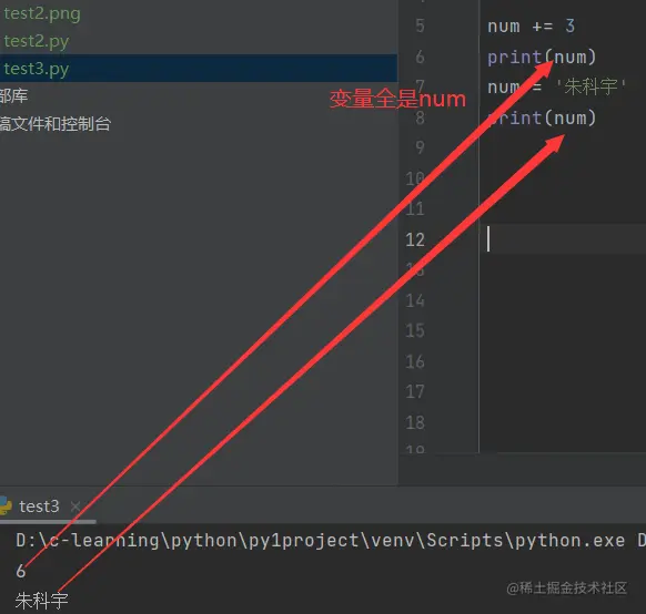 num += 3 print(type(num)) num = '朱科宇' print(type(num))