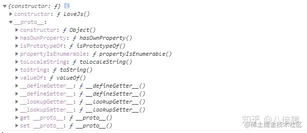 发现 proto, 指向的就是Object,可以暂时找出一个关系就是LoveJs的 proto 指向了大boss,Object。