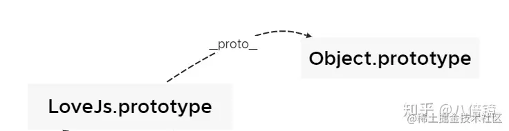 这就是原型链,实例跟构造函数之间的关系,以及构造函数跟Object元老之间的关系,我们这里可以把LoveJs.prototype和Object.prototype看成两个封闭的个体,而这里说的羁绊就是通过 proto 链接起来的,如果是2个个体以上也是这样互通互联,这里就不举例了,下一篇文章介绍下原型链的6种继承方式。