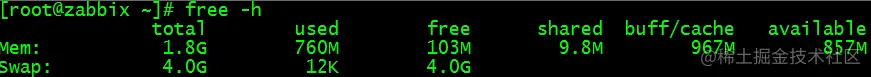 free 命令显示系统内存的使用情况,包括物理内存、交换内存(swap)和内核缓冲区内存。