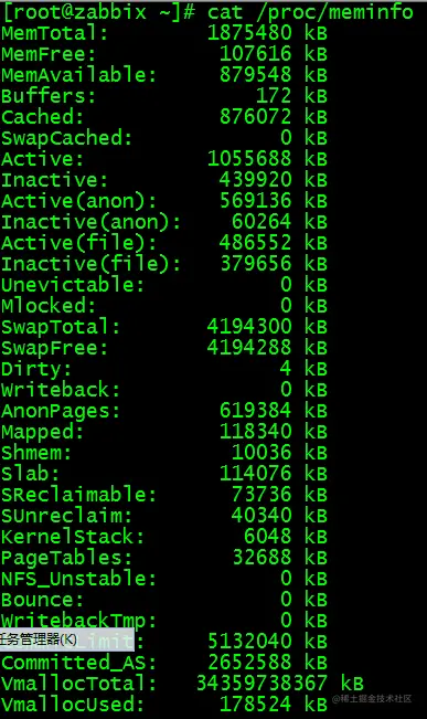 其实 free 命令中的信息都来自于 /proc/meminfo 文件。/proc/meminfo 文件包含了更多更原始的信息,只是看起来不太直观: