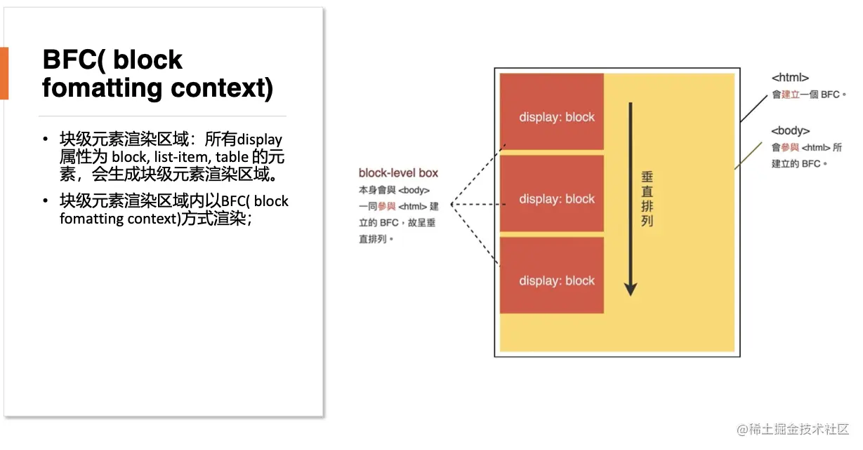 - 左侧BFC渲染区域的margin,必须与右侧BFC渲染区域的margin相衔接,不能出现重叠。