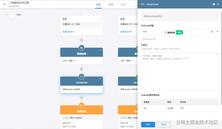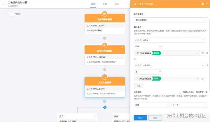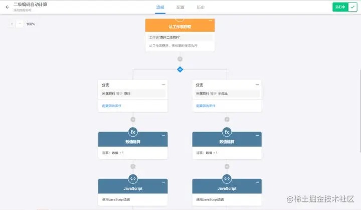还记得前文提到,物料有“原料”和“半成品”之分吗?不同类型的物料有不同的运算规则。因此,我们在第二步找到记录之后,要做物料分类的分支判断,不同的物料类型运行不同的运算节点。