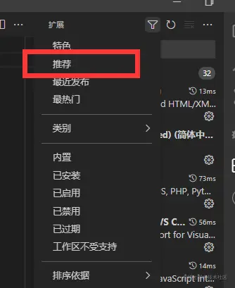当打开项目时,就会显示推荐插件
