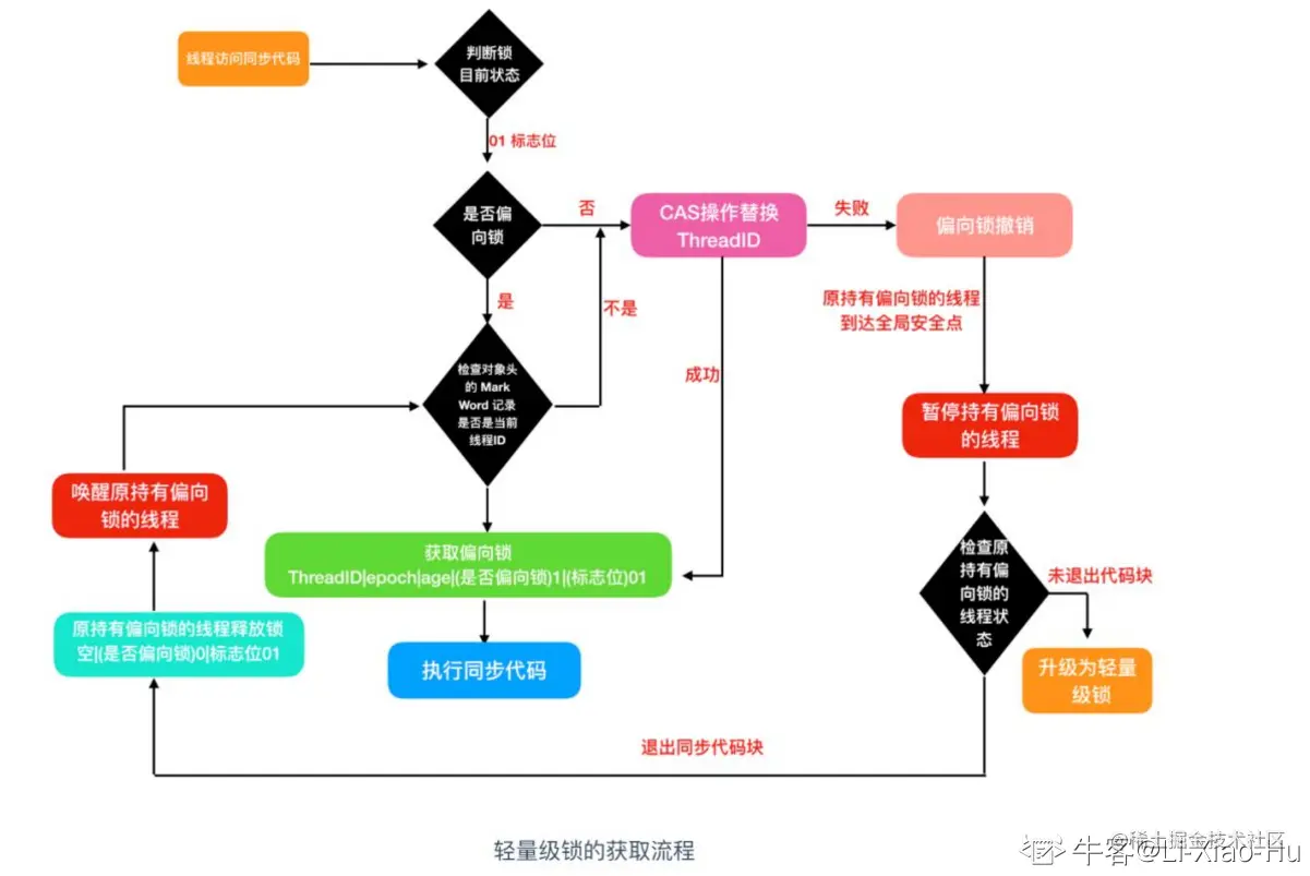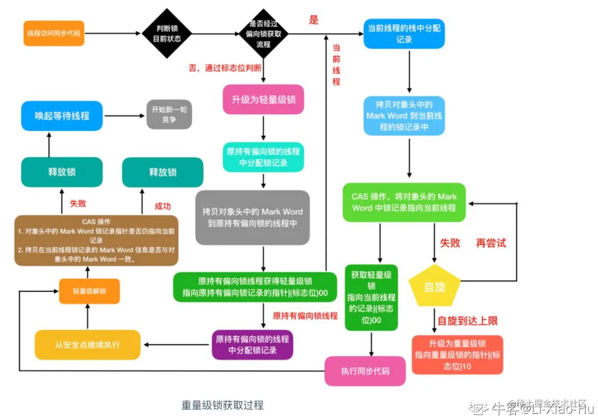如果用流程表示的话就是下面这样(已经包含偏向锁的获取)