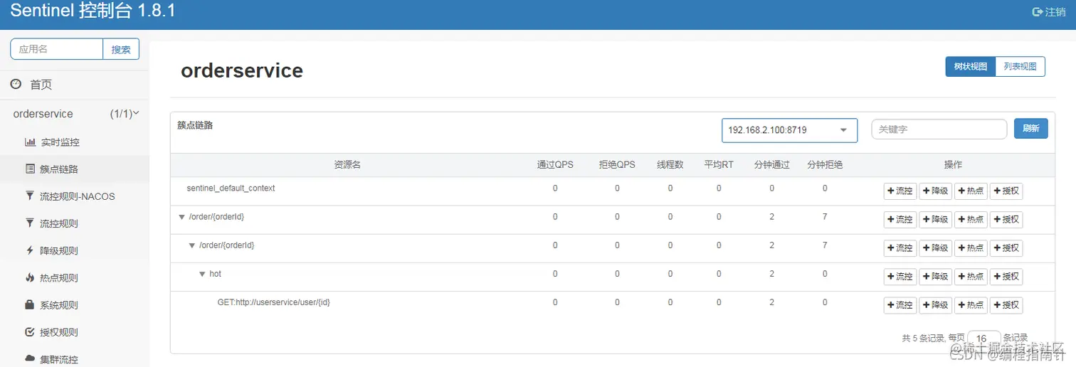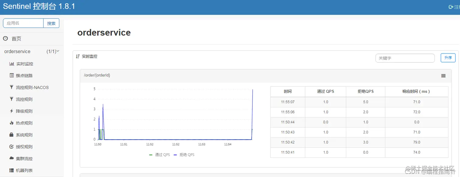 然后再访问sentinel的控制台,查看效果: