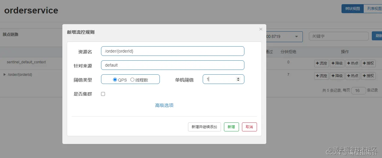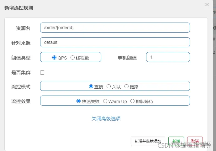 点击资源/order/{orderId}后面的流控按钮,就可以弹出表单。