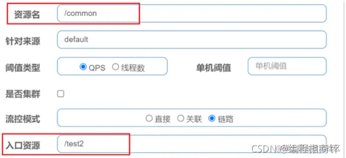 链路模式:只针对从指定链路访问到本资源的请求做统计,判断是否超过阈值。