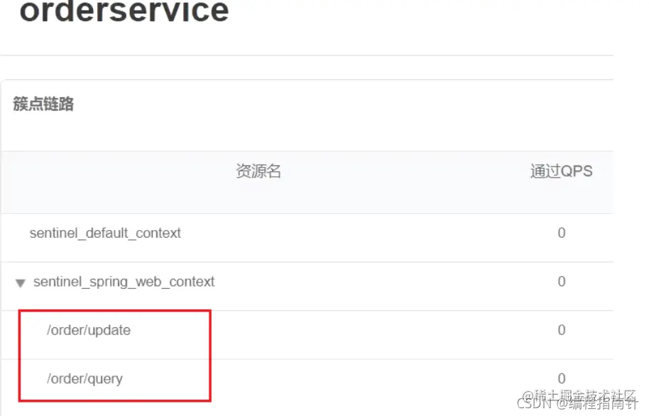 默认情况下sentinel会监控SpringMVC的每一个端点(Endpoint,也就是controller中的方法),因此SpringMVC的每一个端点(Endpoint)就是调用链路中的一个资源。