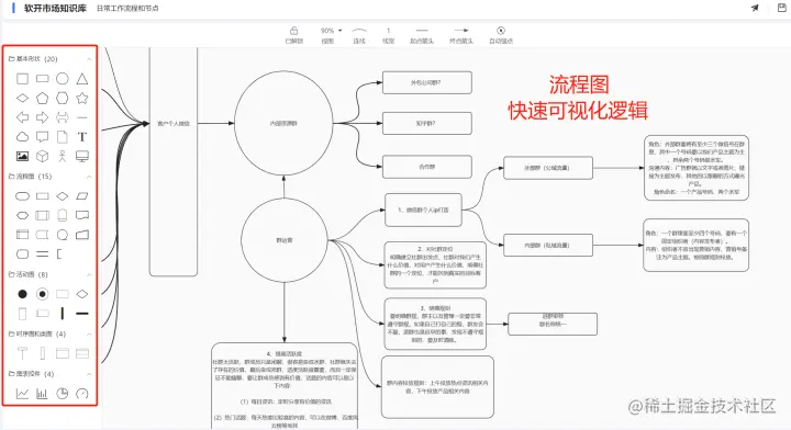 支持图文、脑图、流程图、等多种方式的展现。如图: