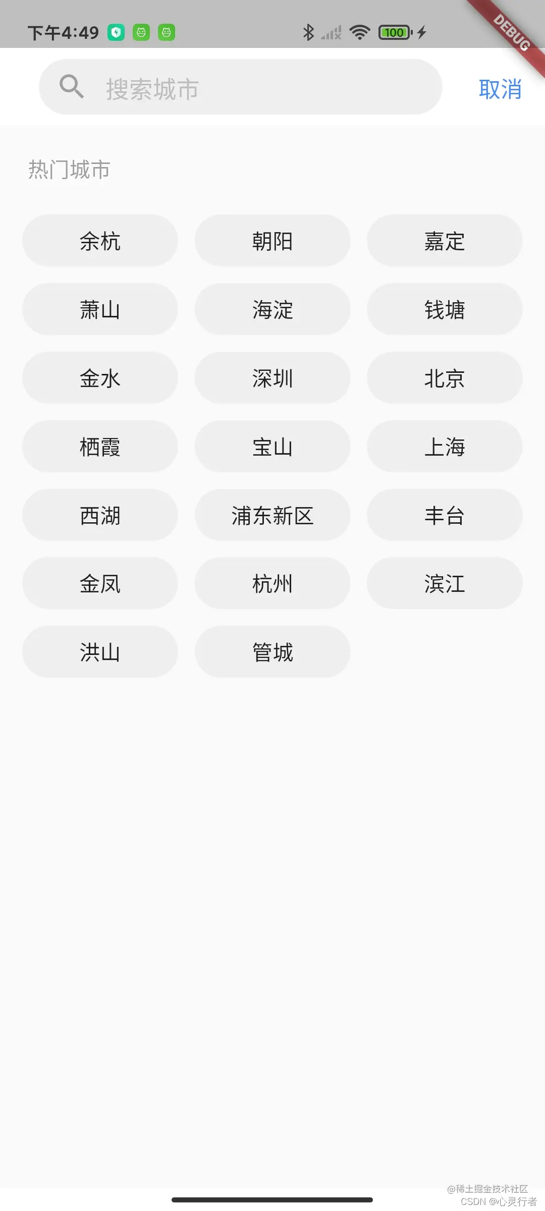 - 城市搜索:城市搜索默认会展示推荐热门城市,点击搜索框可搜索想要关注的城市。