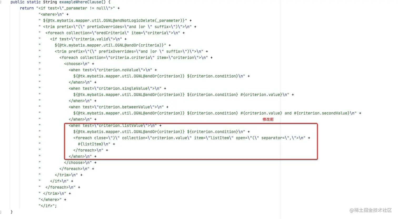 项目启动时候,Mapper会调用ExampleProvider类中的方法生成动态sql, 生成的动态sql的工具类为SqlHelper.java。因此修改SqlHelper.java中的源码即可。