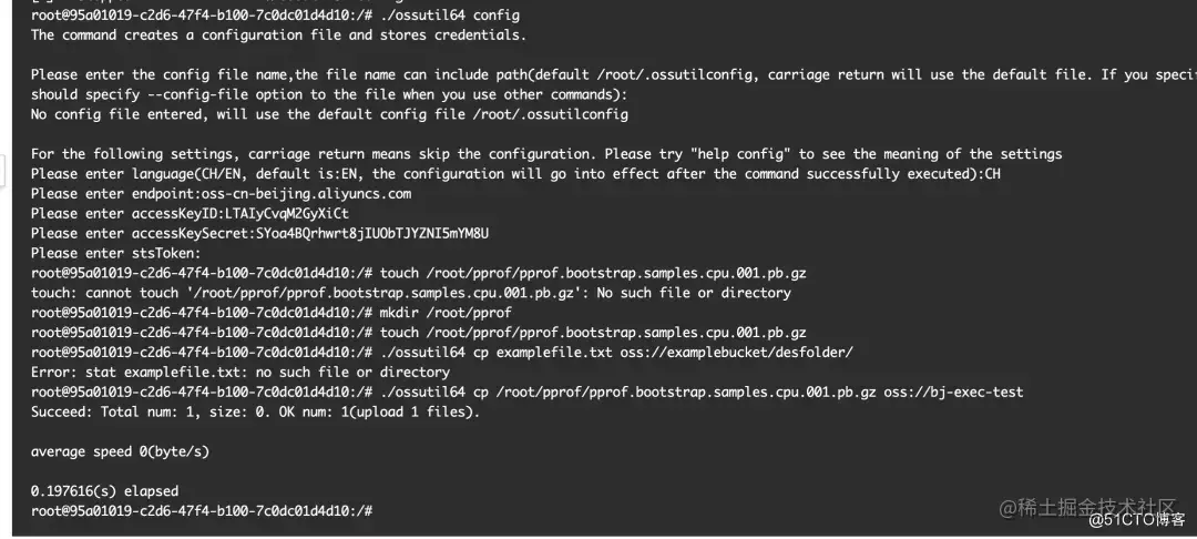 - 最后借助 OSS 命令行工具 ossutil64, 运行 ./ossutil64 cp 命令,将分析文件上传到自己的 OSS Bukcet 中 ,便可以下载到用户本地进行可视化分析。