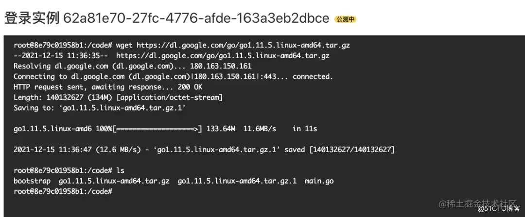 点击“登录实例”,界面将会调到一个终端界面,即可马上登录进实例,执行命令进行问题排查。