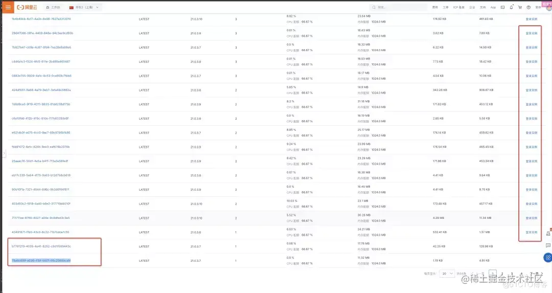 在函数计算官网控制台上在函数详情-监控指标-实例指标页面,在最右侧可以对实例执行登陆操作。
