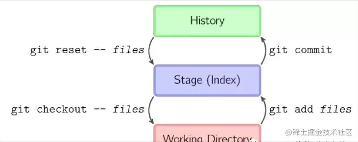 - git checkout -- files 把文件从暂存区域复制到工作目录,用来丢弃本地修改。