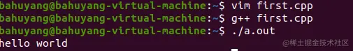 我们用命令 ./a.out 执行该文件,就可以看到控制台输出的 hello world。
