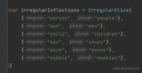 原来gorm默认的复数形式不是简单的加s或es,是根据其词的意义来加的,对特殊的词进行了特殊处理。通过阅读代码,发现有几个词是不会变形的