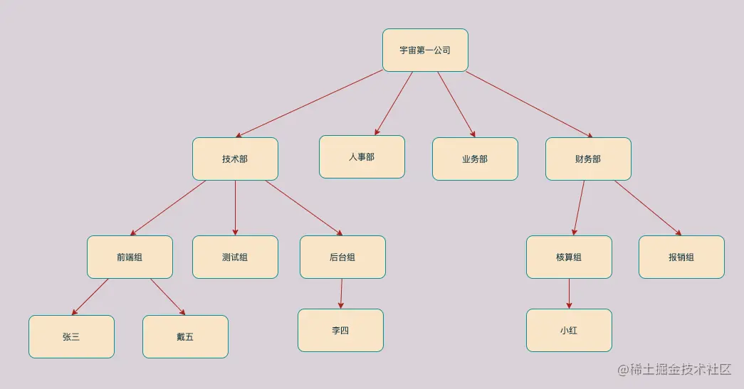 比如公司的组织架构,就是树形的结构: