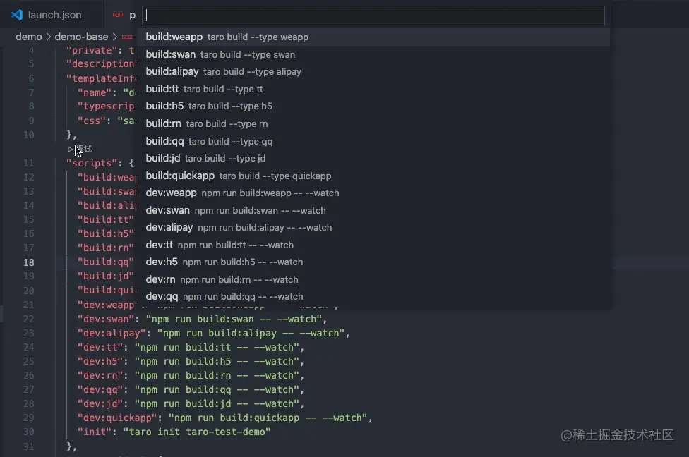 在 VSCode 中打开 Taro 源码根目录的 .vscode 文件夹,编辑 launch.json。