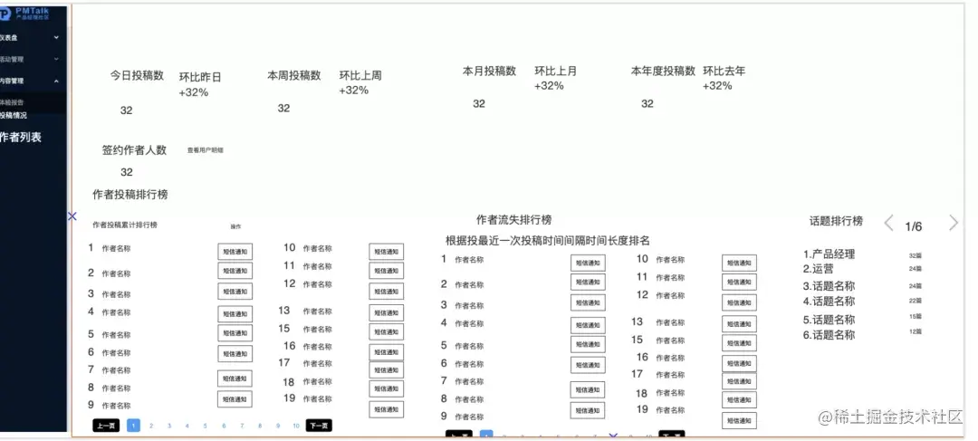 基于本次对话,PMTalk开始迭代自己的数据看板,针对作者投稿回流来引导用户,为运营同学搭建投稿看板。我们构建了作者投稿看板和作者作者列表看板