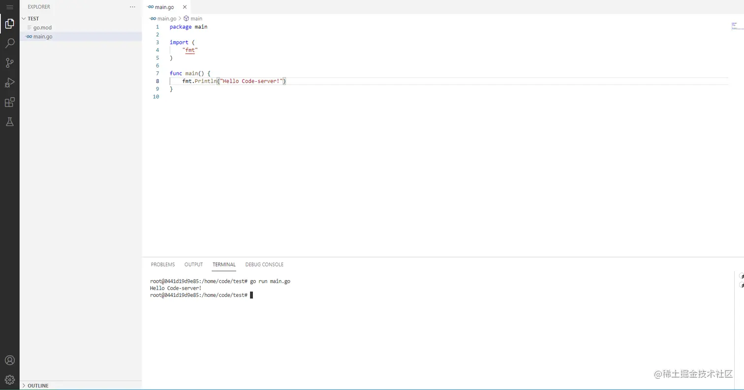 接下来我们将在我们的容器内安装Go语言环境,然后就可以在code-server中编写Go程序了。