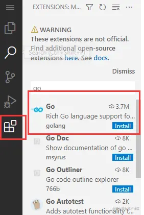 我们像在VS Code中一样,在code-server中安装Go扩展包