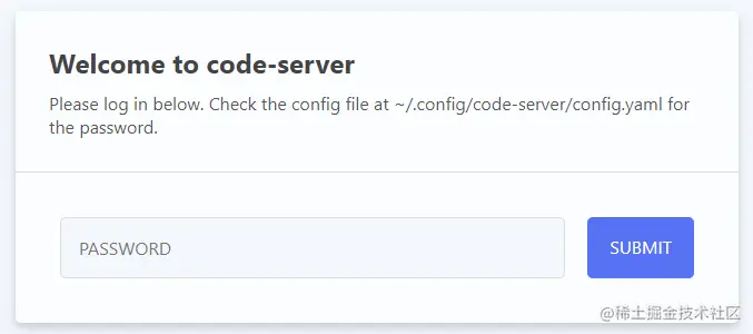我们需要进入到容器中的 提示中的位置查看随机生成的密码 输入进去,就可以进入我们code-server界面。