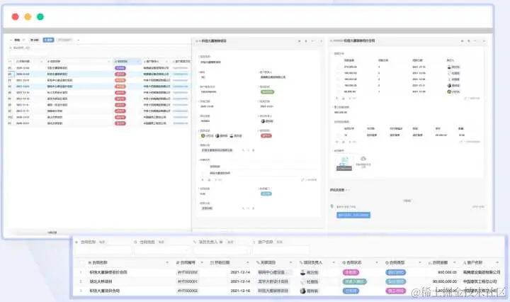 **二者差异:**前者大品牌,功能较全面,但价格稍贵且模块相对固定,后期使用成本高。后者属于新型智慧工程项目管理软件,模块化组件支持模块随需求改动变化,自动化协同,表单数据可快速生成仪表数据,价格有几千块钱一年到几十万私有部署。