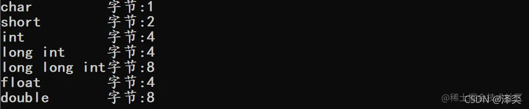 short名为短整形,其实short类型是来自于int的这个整形,他是和int一样都是打印出整形的数据类型,包括long long也都是一样都是属于整形类型的范畴,只不过它们的区别是所占的字节大小,存储空间的大小,以及数值范围的大小是不同的。long long > int > short ,在这里我们先对这三种类型不详细的去介绍💨