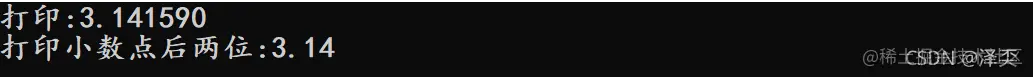 那比如说我要打印3.14159的后两位小数我该怎么打印呢,请看如下实例: