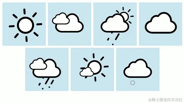 上面分别实现了Rain、Snow、Sun等图形,接下来使用这些元素组合成各种天气效果。