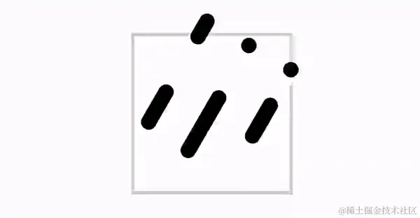 经拆解后,雨水效果可由三组雨滴构成,每一组雨滴分成上下两端,这样在运动时就可以形成接连不断的雨水效果。我们使用drawLine绘制每一段黑线,设置适当的stokeWidth,并通过cap设置端点的圆形效果: