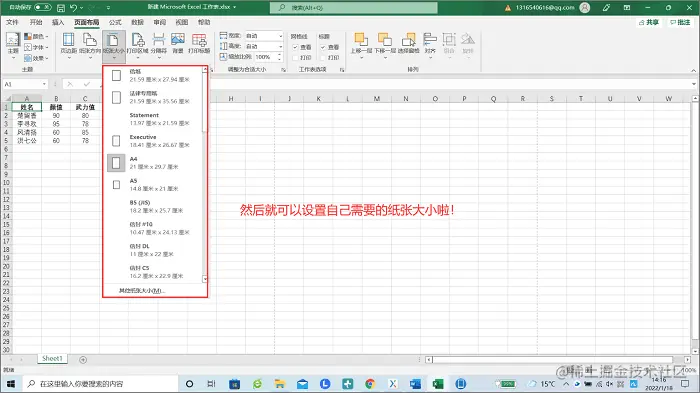 你也可以点击“其他纸张大小”进行自定义设置。