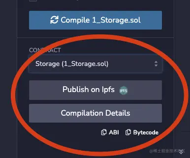 编译后会出现上图界面,可以点击复制我们的abi或者字节码