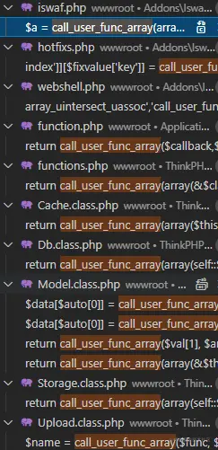 确认完后开始看代码,先直接全局搜索,各种敏感函数都搜一遍,发现有call_user_func_array: