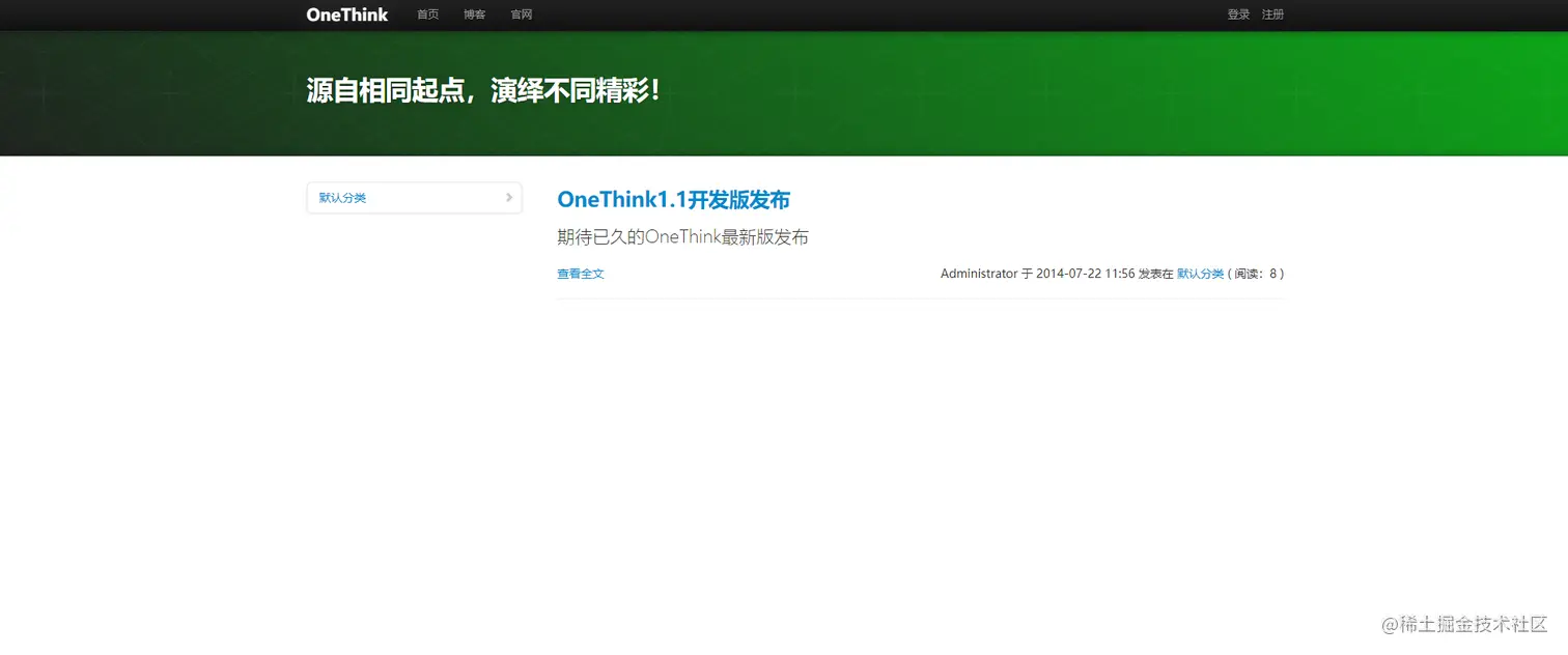 找到一个旁站,Onethink,没有什么数据,看着像是测试用的: