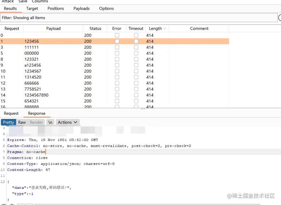 .查看登录的请求包密码,发现没有经过加密,那就随手爆破一波碰碰运气——不出意外没有成功: