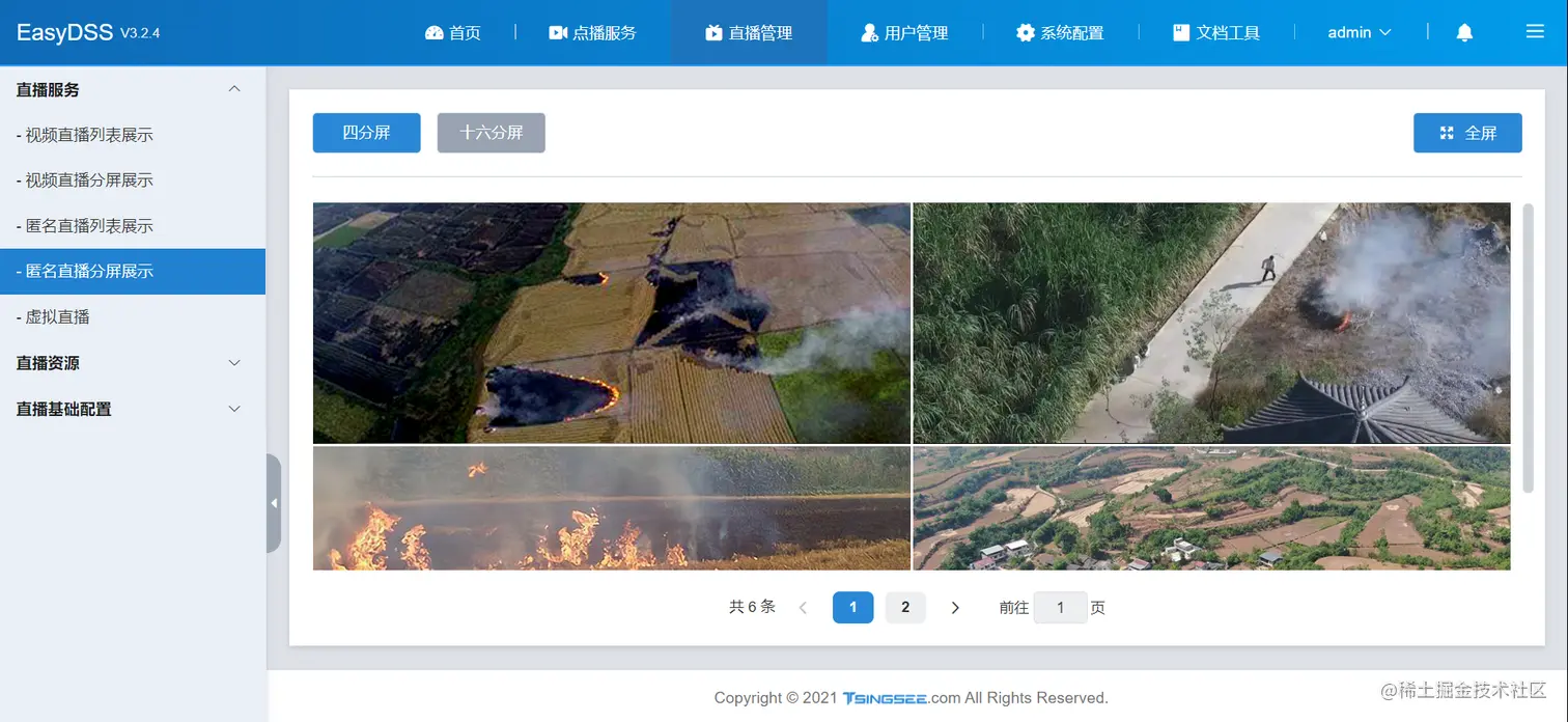 EasyDSS具有电视直播、现场直播、时移电视、即刻回看和视频点播功能,适合OTT TV、IPTV、互联网教育、视频聊天、现场直播和VOD等应用。尤其是在无人机的场景上,EasyDSS+无人机直播推流方案应用也非常广泛,如森林防火、秸秆焚烧巡查、城市航拍等等。