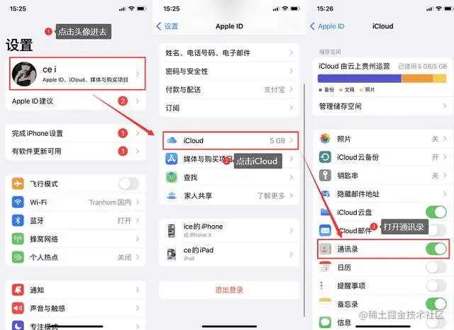 操作流程:在手机的【设置】,点击我的头像账户进去再选择【iCloud】,之后在【通讯录】右侧点击打开,即变成‘绿点’,这样完成了同步通讯录号码到iCloud账号中。