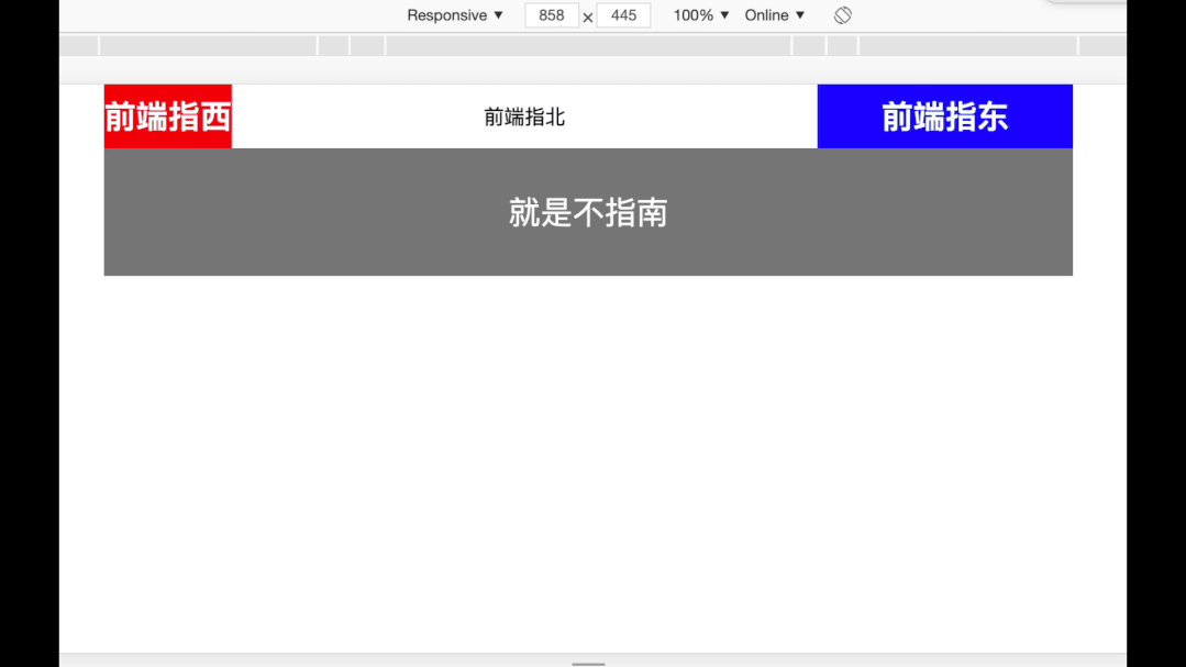 // 纯css算法布局技术<header><div class="logo">前端指西</div><div class="devils-albatross">前端指北</div><div class="nav">前端指东</div></header><section class="main"><div class="inner">就是不指南</div></section>