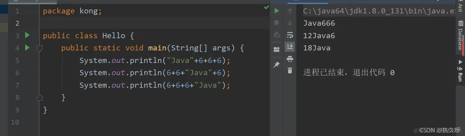 这个是不同于c语言的,在Java中,+号除了能购做运算之外,还有一个常用的用处-------------
