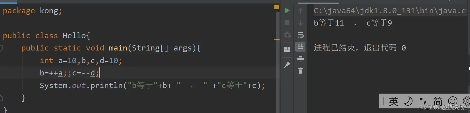 System.out.println("b等于"+b+ " , " +"c等于"+c);